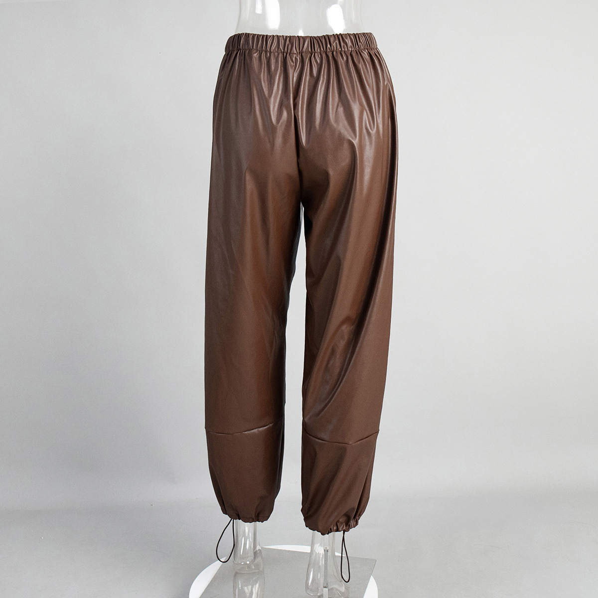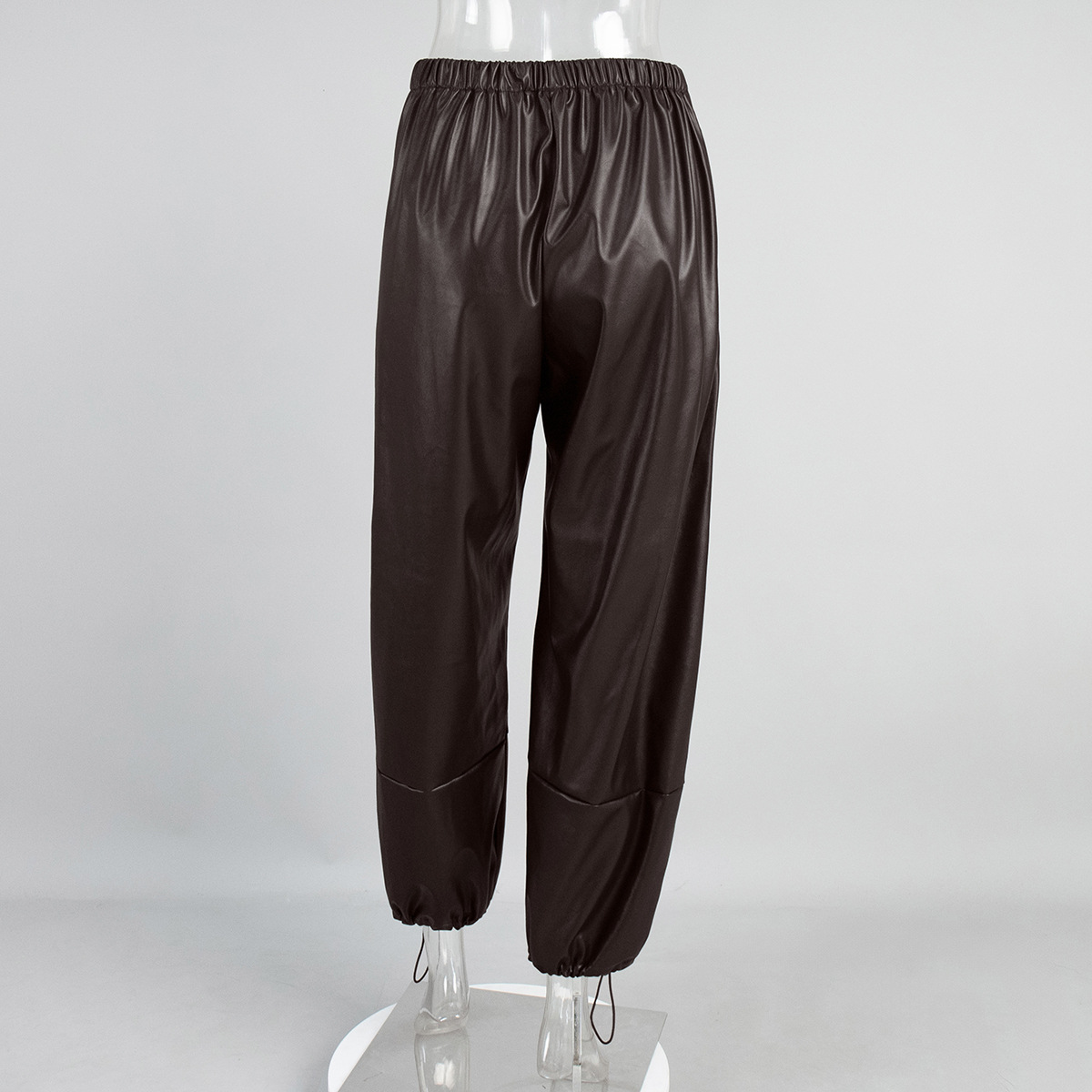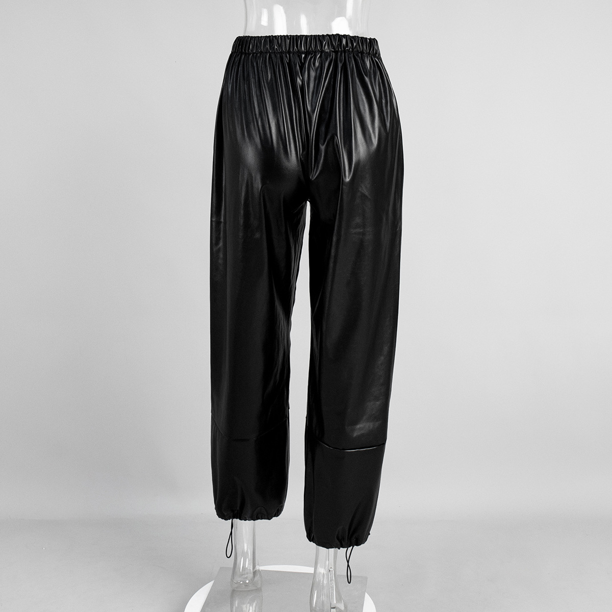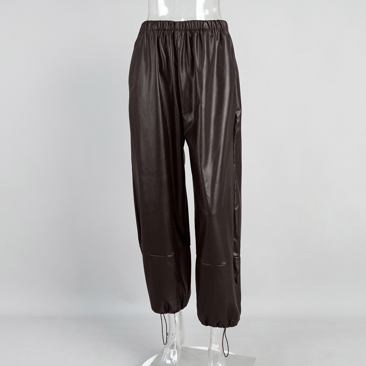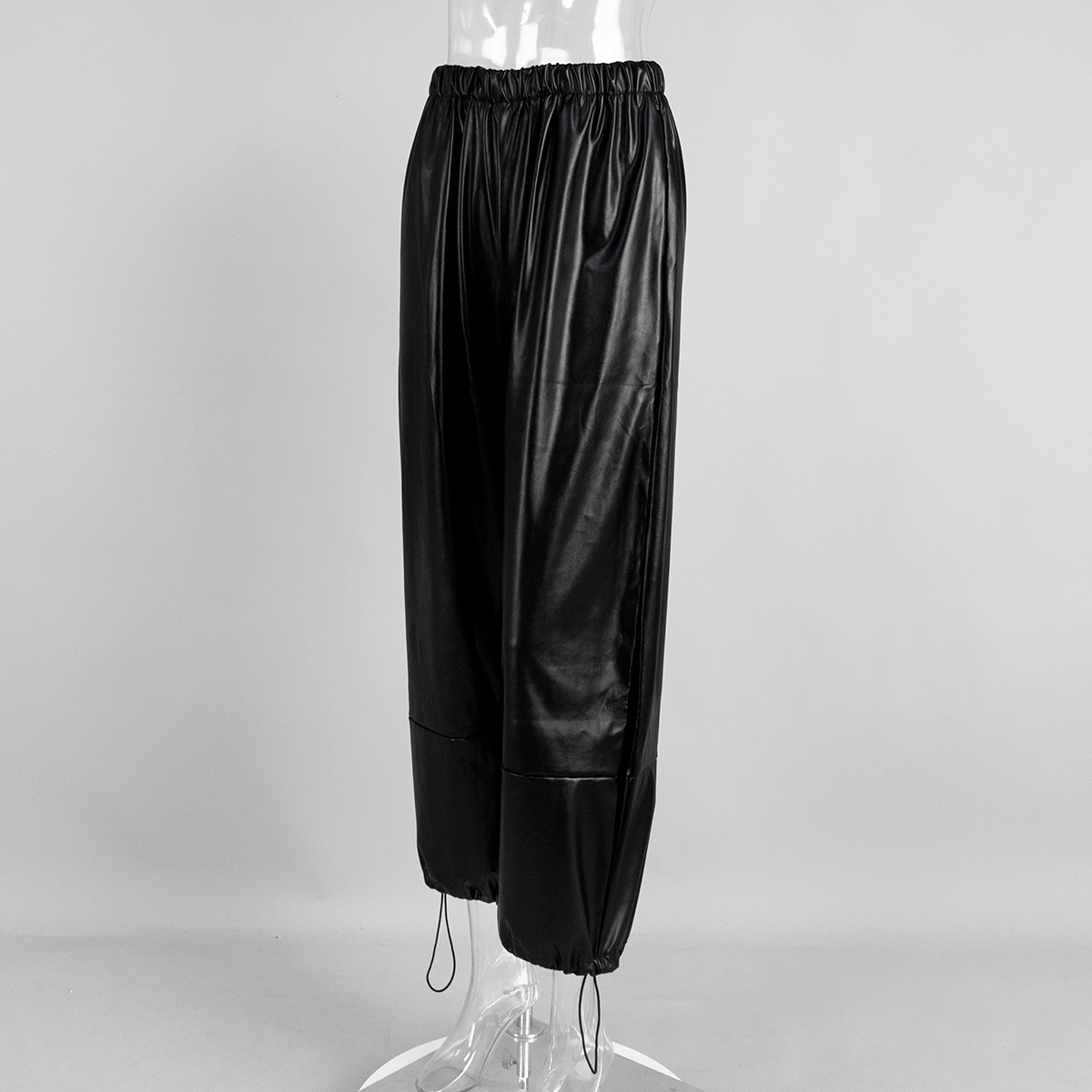 Drawstring Ankle-tied Bloomers Loose Leather Pants PU Leather Trousers
