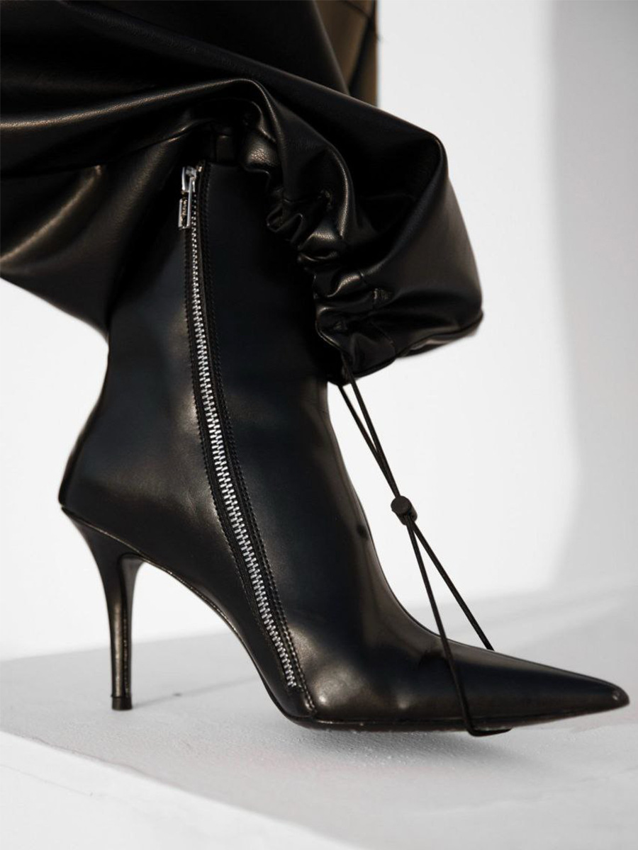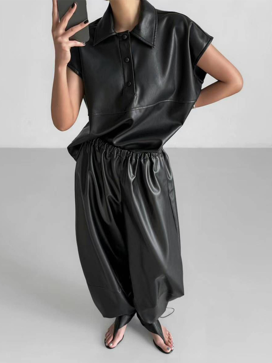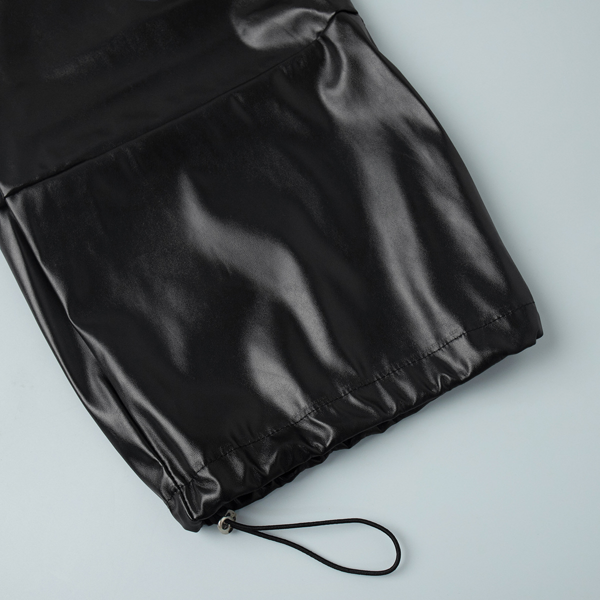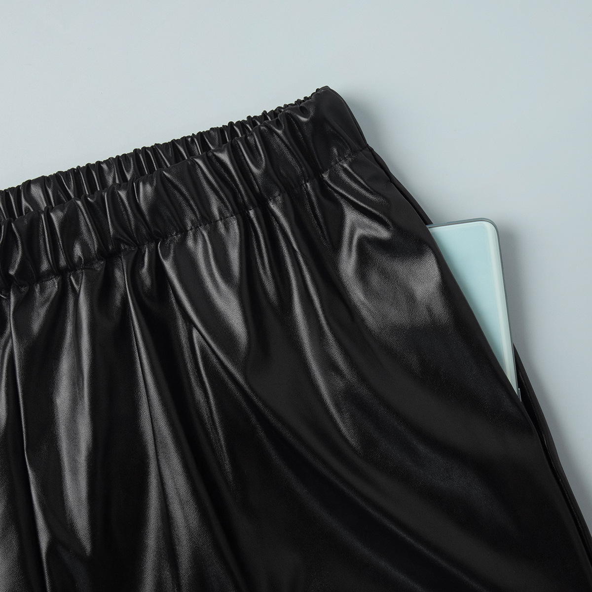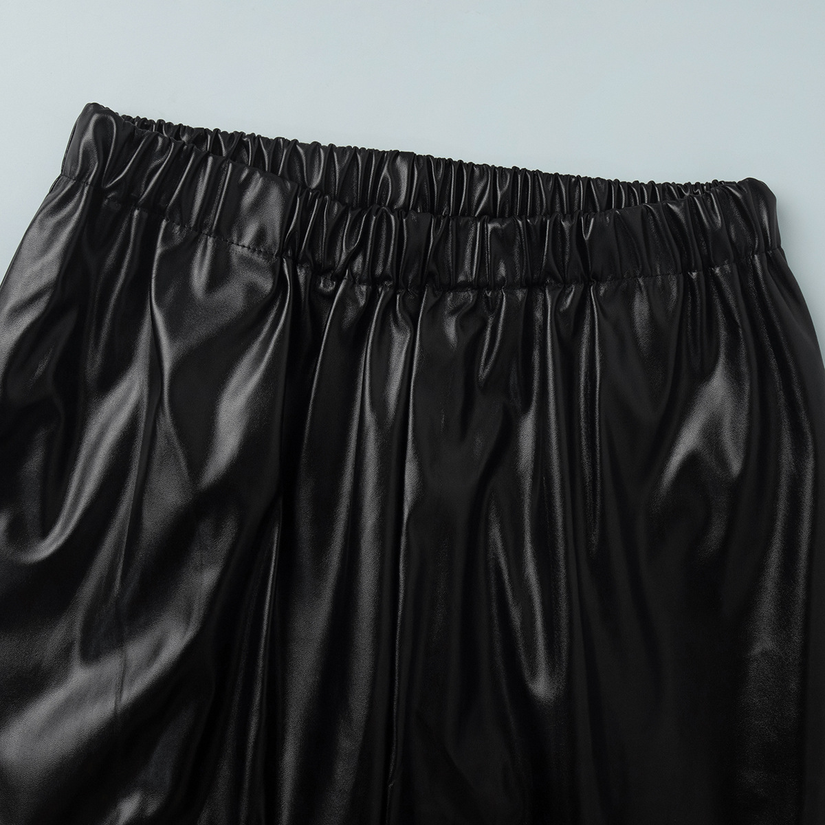 Drawstring Ankle-tied Bloomers Loose Leather Pants PU Leather Trousers